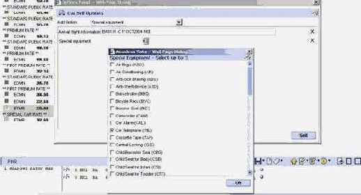 Система выдаст на экран Car Sell Options. Выберите опцию из предложенного списка, например, Special equipment. Затем выберите из списка специальное оборудование и кликните на OK.